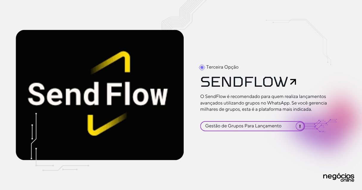 - Sendflow: Foco total em quem organiza múltiplos grupos no WhatsApp, principalmente infoprodutores. Não é a melhor alternativa para automação completa, mas resolve bem a gestão de grupos.